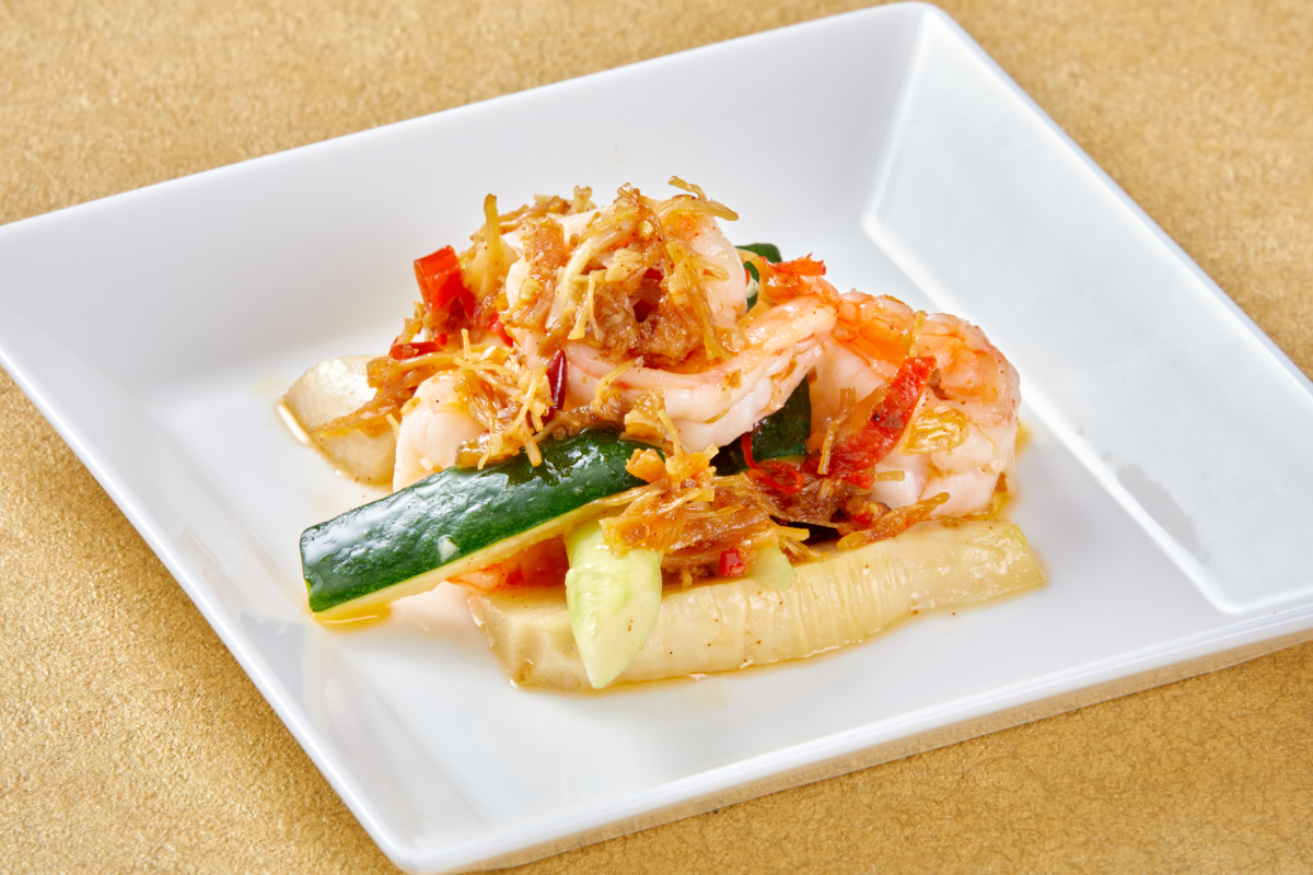 ぷりぷりの海老を旨味が詰まった自家製XO醤で仕上げ、濃厚で上品な味わいが香りとともに口いっぱいに広がります