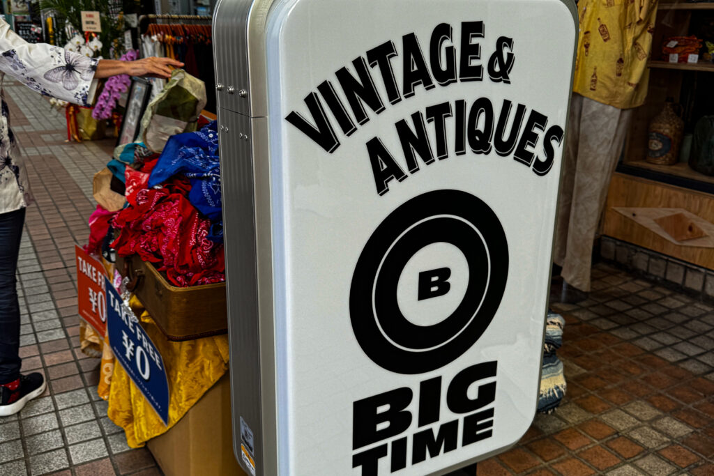 ホテル コレクティブから徒歩10分、那覇市の中心部にありながら、どこか懐かしい雰囲気を残す新天地商店街、昔ながらの店舗と新しいショップが混在し散策するだけでも楽しいエリア。国際通りからも徒歩圏内とアクセスも良く、観光の合間に気軽に立ち寄ることができ、周辺には沖縄そばの老舗や地元の人々に愛される食堂などもありショッピングと合わせて沖縄の日常の食文化も楽しむことができるこの場所に、新たなカルチャーの発信地、古着&ヴィンテージアイテムの専門店「BIG TIME GARAGE」が、4/27グランドオープンを迎えました。