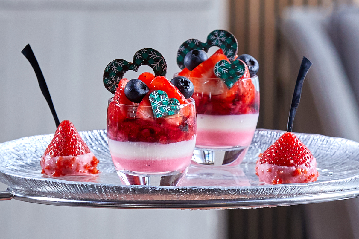 We present our seasonal Strawberry Afternoon Tea, enveloped in a sweet and tangy aroma. Sweets generously featuring strawberries—including the visually stunning “Strawberry Macarons” and the melt-in-your-mouth “Berry Cheese Mousse”—alongside vibrant savory items gracefully adorn a three-tier stand. Enjoy an elegant and special moment