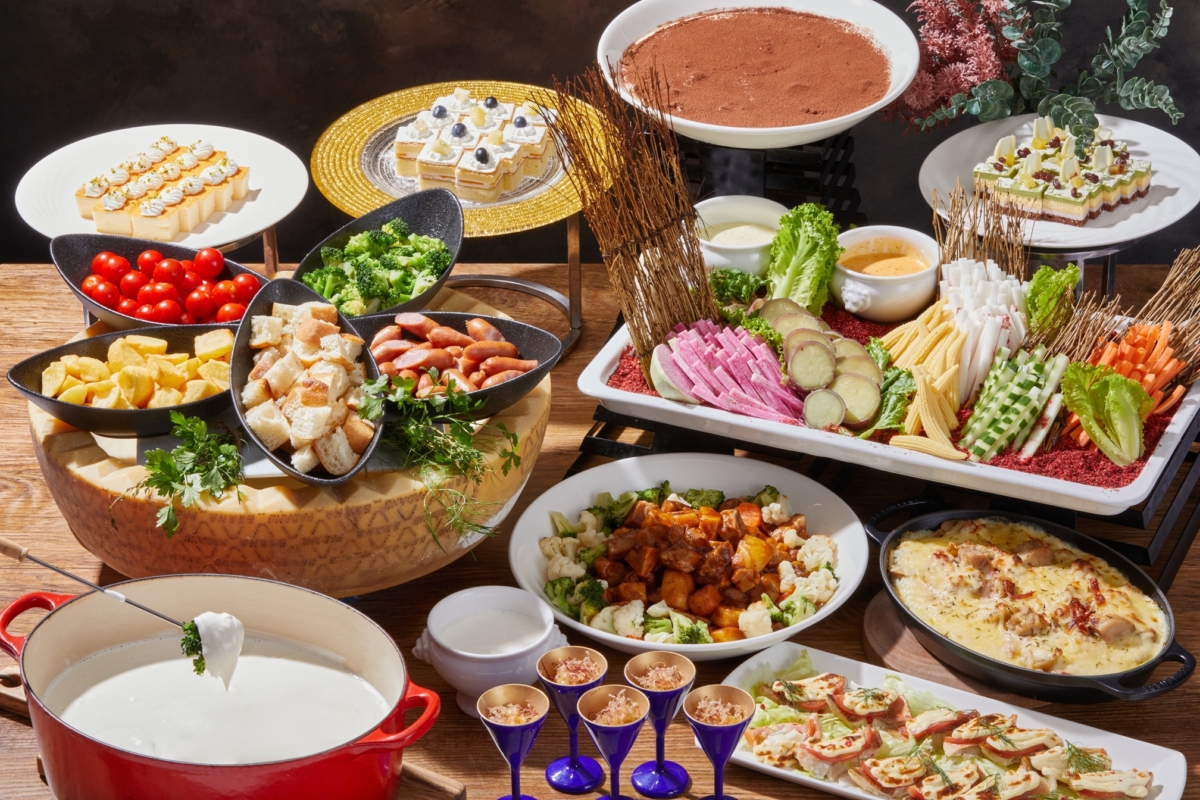 4F Vision&Emotionでは11月からチーズフェアを開催、お好きな具材をディップして愉しむチーズフォンデュや、チキンとベーコンのドリア タイム風味、角切りポークとポテトの軽い煮込みゴルゴンゾーラソースなどのフェアメニューの他、人気の寿司、天ぷら、しゃぶしゃぶ、ローストビーフはもちろん、平日限定でうなぎも登場。