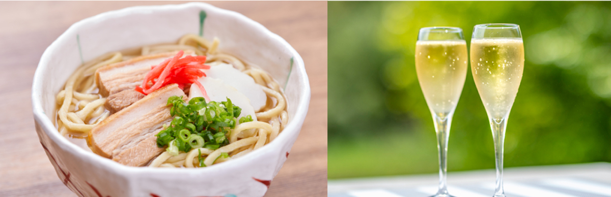 幸せが細く、長く続きますようにと、当ホテルに在籍している琉球料理伝承人が作る沖縄そばをご提供します。