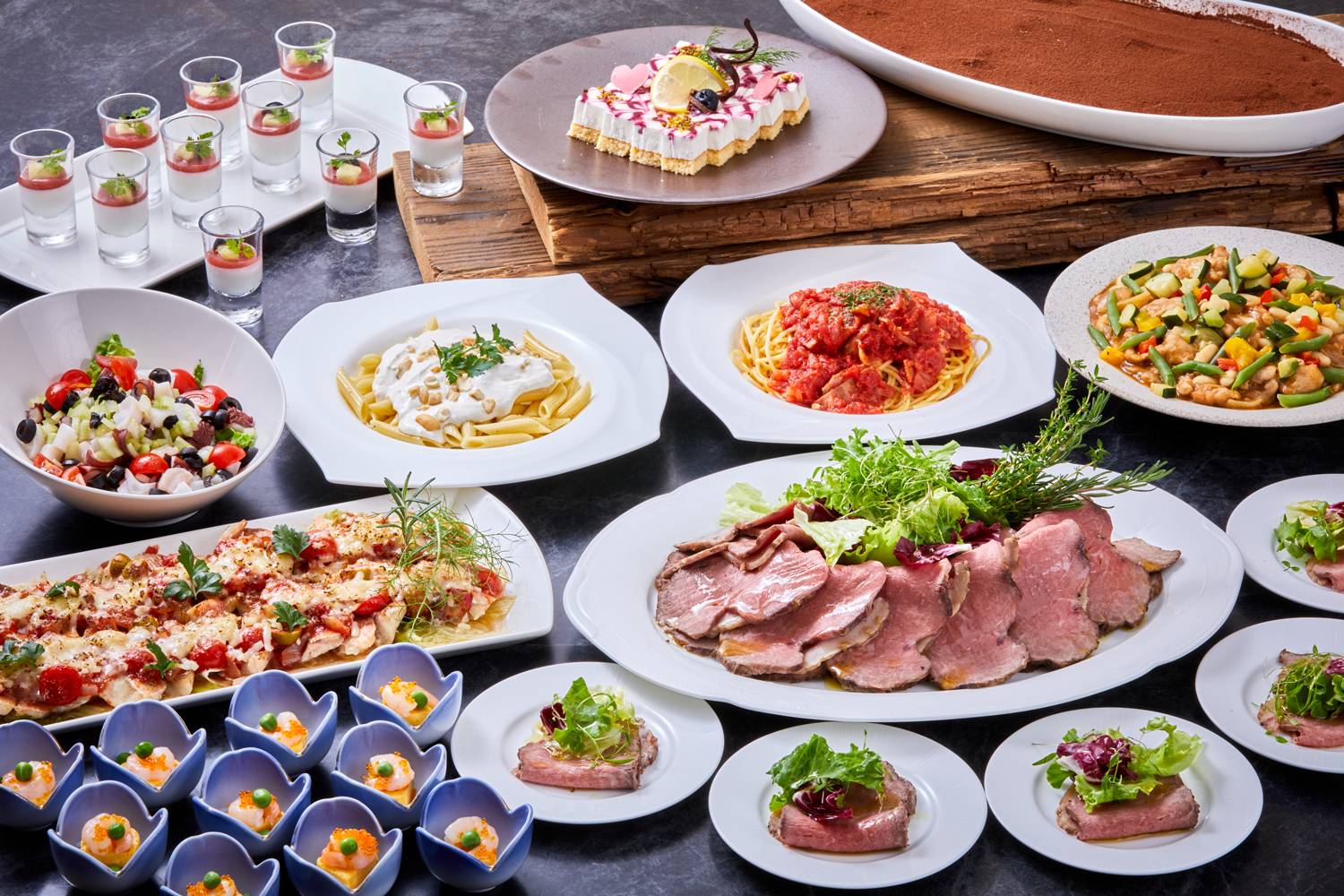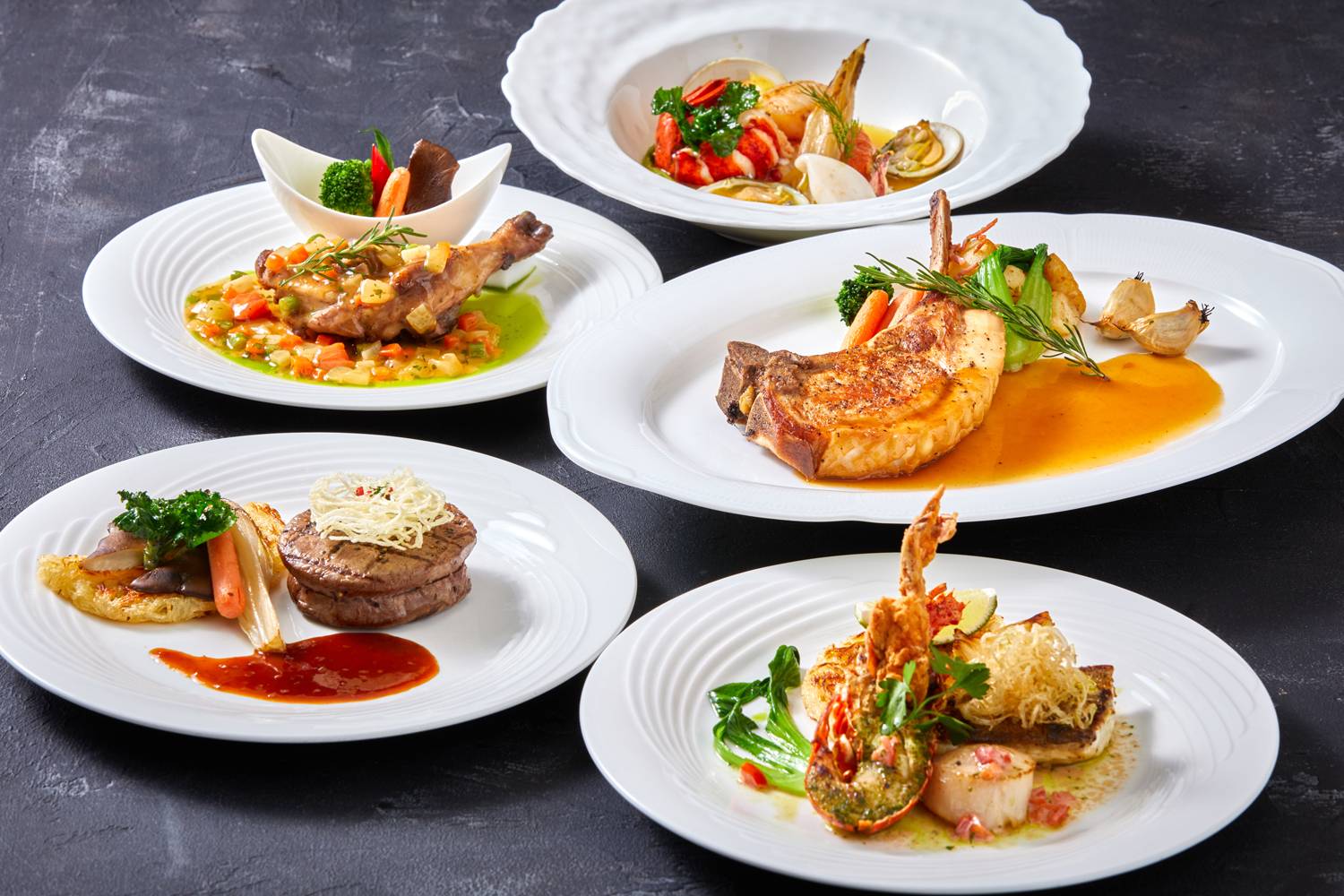 5種のメイン料理&ディナーハーフビュッフェメニュー>