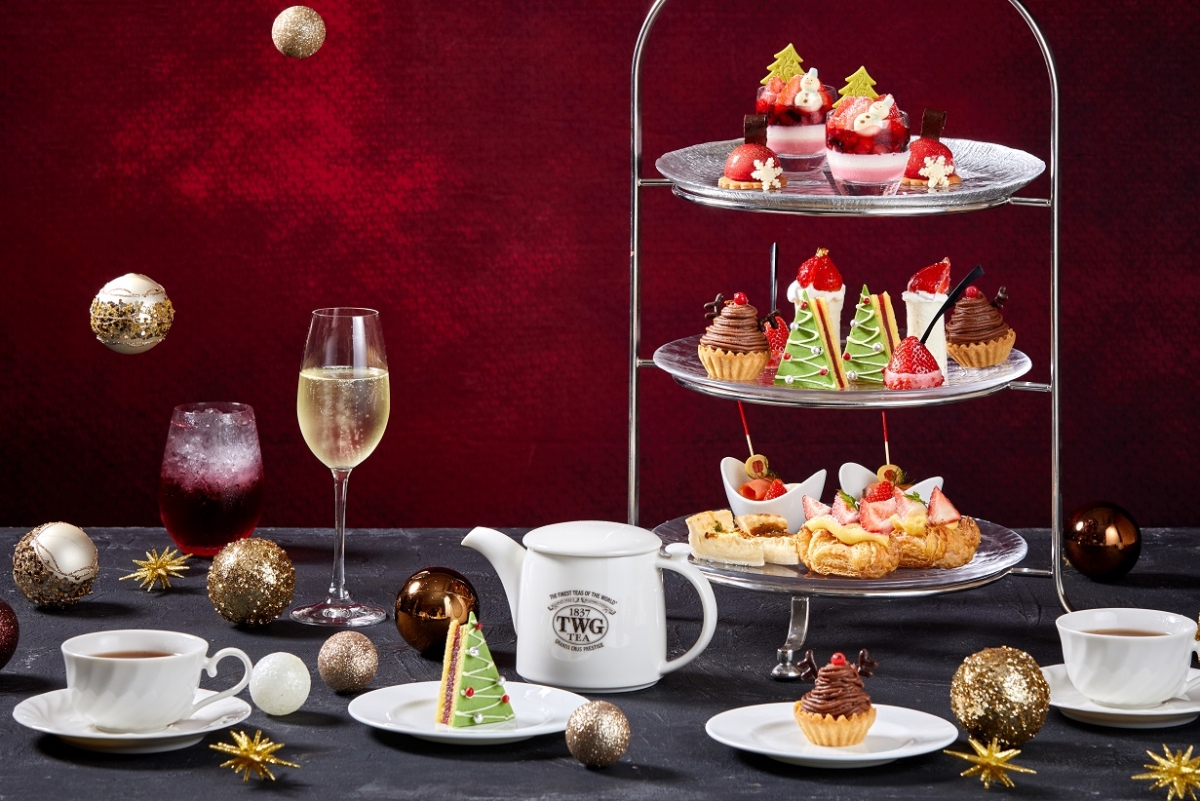 心踊るクリスマスモチーフのスイーツ7種と、セイボリー2種をご用意。お飲み物は、シンガポールのラグジュアリーティーブランドTWG Teaセレクション8種より、お好みの紅茶をお選びいただける他、コーヒー、5種のソーダ&スカッシュをご用意。※お飲み物のお代わりは120分とさせていただきます。