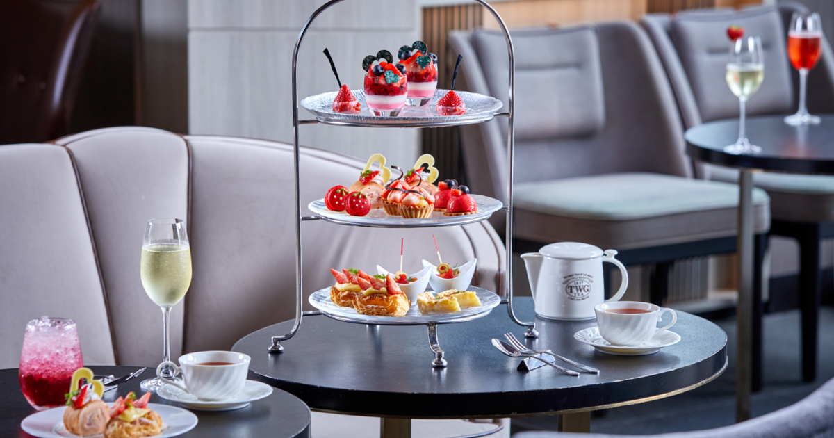 甘酸っぱい香りに包まれる、季節限定のストロベリーアフタヌーンティーをご用意いたしました。苺をふんだんに使用したスイーツは、見た目も華やかな「いちごのマカロン」や、口どけ滑らかな「フロマージュベリームース」、彩り豊かなセイボリーが3段スタンドを華やかに彩ります。優雅で特別なひとときをお過ごしください。