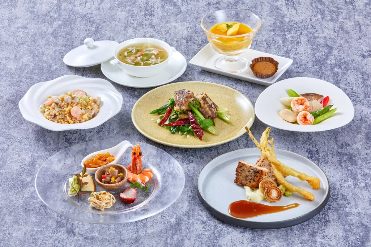 前菜三種盛り合わせ・北京ダック・デザートに加え、〈スープ〉〈点心〉〈メイン〉〈麺飯〉 全36種類のメニューからお好みの料理をお選びいただけます。居易園名物「麻婆豆腐」 や、人気の「海老のチリソース煮」、「酢豚」、「牛肉オイスター炒め」など、お好みの味わいを ご自由にデザイン。選ぶその瞬間から、ご褒美タイム。特別な中華体験をお楽しみください。